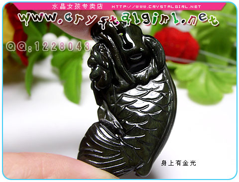 水晶女孩密语:龙头鱼,颜色乌黑,表面光亮,全手工雕刻,雕工精细,金眼明显漂亮!