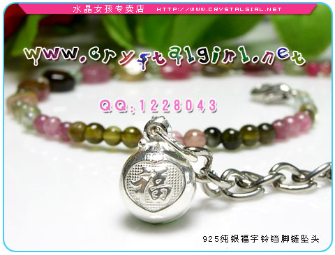 925纯银福字铃铛坠头。本品不单独销售(可配合脚链或手链购买)内有铜籽,因铃铛本身体积不大所以发出来的声音是哑哑的,所以不会影响到别人,水晶也不会显的单一:)