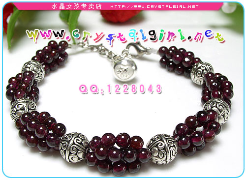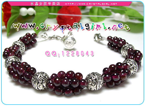 水晶女孩小贴士:石榴配上藏银,随性的民族风!百搭款,很有味道哦~链坠为纯银福字小哑铃,寓示着连年有福! 石榴石:又称紫牙乌,英文名:Garnet,由拉丁文Granatum演变而成,意为“像种子一样”。石榴石晶体与石榴籽的形状、颜色十分相似,故名“石榴石”相传其名源於古代阿拉伯语的“牙乌”,即红宝石。因石榴石色深带紫故称“紫牙乌”。 石榴石的作用:天然石榴石可让人拥有难以抗拒的魅力,招来幸福与永恒的爱情,增加自信,对抗忧郁,帮助人面对过去的创伤回忆,用另一个角度去诠释理解,达到平静喜悦的境地。可加强生命力、活力与耐力,睡觉时,亦可以配戴。对血液循环与荷尔蒙分泌都有一定的刺激作用,有益生殖系统与相关器官的健康;促进再生能力和血液循环,有养颜美容返老的功效。能改善皮肤的毛病,防止伤口恶化。增加人思考的灵感,辟邪化煞,成为不受外力侵犯的护身石。对应海底轮,可增加性能力并可藉由关想脾脏的活化来净化脾脏,对关节炎据说也有效。是馈赠好友及自己佩带的佳物。红色「石榴石」还有旺血强心的特效,最适宜体弱畏寒的女仕使用或配戴。 |