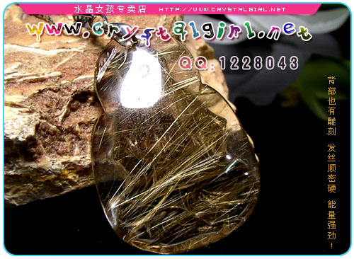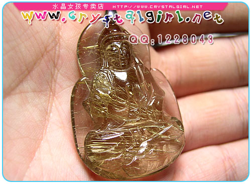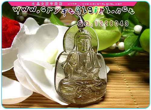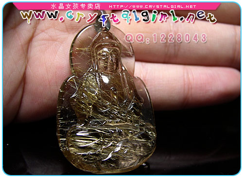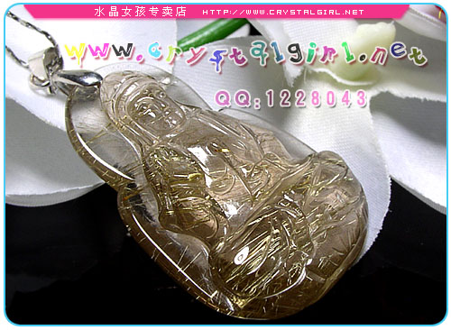 小贴士:此尊细钛金观音坠通体透亮,金光实足,钛丝顺硬,特别在阳光下闪闪耀眼,让人爱不释手!男带观音,谐音“官印”,所以这尊观音坠特别适合男士配戴! 观音是经过几千年来劳动人民的提炼以佛教中的观音大士与道教中的王母娘娘和融合所形成现在我们所见到的女身形态。观音是中国数千年来慈善与救赎的化身,是真善美的代名词。观音心性柔和,仪态端庄,佩戴可消弥暴戾,远离是非,世事洞明,永保平安,消灾解难,远离祸害。观音菩萨可以救助世上的一切痛苦和困厄。观音菩萨能急人所急,难人所难,随时解救困厄的人。观音可以现出三十三应身,能把人渡往幸福的彼岸观音菩萨救人是不图回报的。 钛晶也是发晶族群之一,特征是含针状金属之矿物质內含物,目前产地巴西北部的巴依亚州由于产量稀少,已停产惜售,是现今最珍貴的水晶类宝石。钛晶也是发晶族群里能量最为强大的,常象征大吉祥、富贵、如神佛加持。一般钛晶皆具有六大主能量,主财、偏财、人缘、避邪、健康、防小人。质优的钛晶也一直是水晶收藏玩家即欲收藏的至宝! 钛晶 Quartz Rutilated 化学式 SiO2 晶系 六方晶系