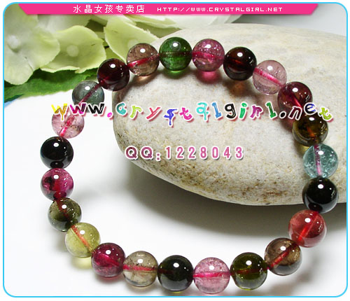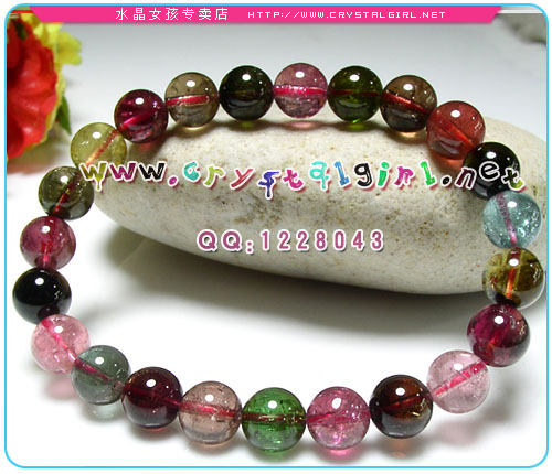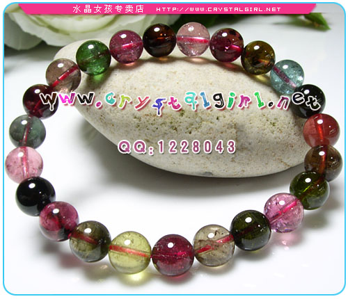 此款碧玺手链颜色艳丽,晶体通透,色彩非常丰富,有蓝珠,很衬皮肤!
