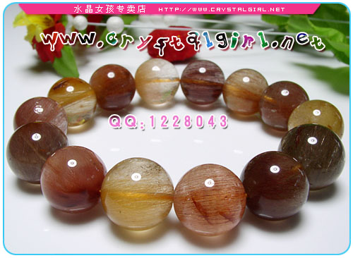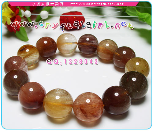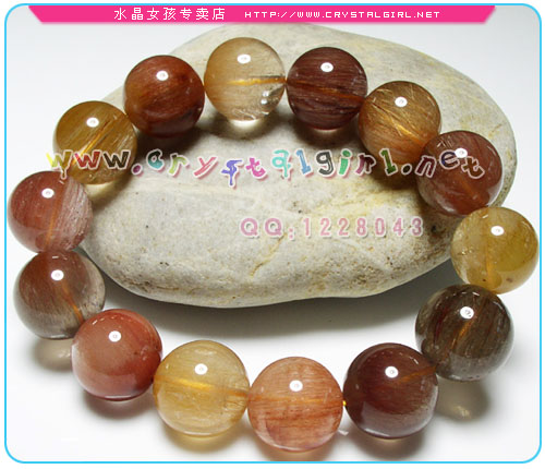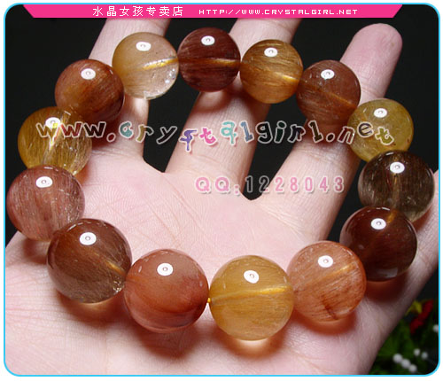 水晶女孩小贴士:本款为彩发手链,含金色发晶、褐色发晶、红色发晶,色彩多而低调,所以男女都可以戴,中意大珠的亲们不要错过啦~~ 发晶磁场能量较强,可增强胆识,加强一个人的信心及果断力,能带给人勇气,可助人投射出权威的能量,有助于领导人命令的贯彻与执行。由于发晶的不同颜色,可发出不同的光能,每根发丝带动水晶本身的能量加倍运作,能使人百脉皆通,启发内视潜能,提高身心健康和灵性.发晶还能够给人带来刚毅果断,勇往直前,坚忍不拔的能量,加强一个人的信念及自信心。 *金色发晶:代表着财运,能增强佩戴者的正财及横财运。它亦有象征吉祥的意思,具有镇宅及供佛之用。 *红发晶、褐发晶:化是非及带来幸运,具显著美容功效。 |