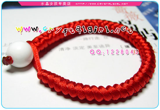 | 金刚结幸运红绳,结尾为一粒12MM的砗磲,本款红绳比较粗,适合喜欢民族风的你,男生也适合配戴哦:) |