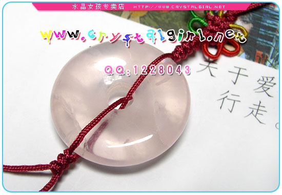 粉晶平安扣手机链,包链,小挂件,随身携带有好人缘! 在任何生意场所,多多摆放各式粉晶,有助于降低客人的警觉性、比较心与防备能力,能够放心大胆地消费。 对于外出的业务人员,随身佩戴粉晶,亦有助于增强与客人的关系,提高亲和力,促进商务成功。 平常因种种因素导致人缘不好人际关系欠佳的人,佩带粉晶有让你更有包容心与同理心、可改善人际关系不佳的状况,让你处处受欢迎。 粉晶的作用:粉晶是可开发心轮促进情感发达的宝石,可帮助追求爱情、把握爱情、享受爱情的宝石。协助改善人际关系,增进人缘,并招生意缘。可以协助深入内心,舒援紧张、烦燥情绪,保特心境平静,发现自我、提高悟性。 |