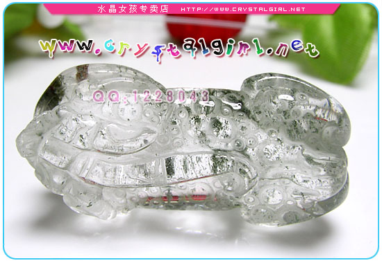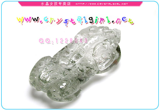 小贴士:此款幽灵貔貅晶体通透,翠绿色的幽灵清晰可见,招财必备哦! 满天星:晶体内包物如星星一样随机呈现,俗称满天星。 貔貅:传说貔貅是龙的第六个儿子狻猊(音酸泥,性好烟火,常饰于香炉盖子的盖钮上),与狮子结合所生,所以是龙的孙子(通常人会认为貔貅是龙的第九个儿子,这是错误的说法)。 所谓貔貅坐阵,大杀三方。貔貅能腾云驾雾,号令雷霆,降雨开晴,相传有辟邪挡煞,镇宅之威力。又相传貔貅喜爱金银财宝的味道,常咬回金银财宝讨主人欢心。有旺财之功用,驱邪招财。貔貅以财为食,可纳食四方之财,对于做生意的人来说,貔貅是一只旺财的神兽,有招来正、偏财及为你牢守财富不外流作用,可保你财运亨通哦。宜用于商店、厂房、办公室及家居以达招納效果。爱好偏财者更不可缺少。有镇宅辟邪之功效,可保合家的平安! 貔貅:是一种凶猛瑞兽,是如凤凰、麒麟一样分有雌性及雄性,雄性名为“貔”,雌性名为“貅”,但现在流传下来都没有分为雌雄的了。还有古时貔貅是分为一角或两角的,一角称为“天禄”,两角称为“辟邪”,后来再没有分一角或两角,多以一角造型为主。在南方,一般人是喜欢称这种瑞兽为“貔貅”,而在北方则依然称为“辟邪”。致于“天禄”则较为少人用以称这类瑞兽,还有些人将它称为“怪兽”或“四不像”等。 |