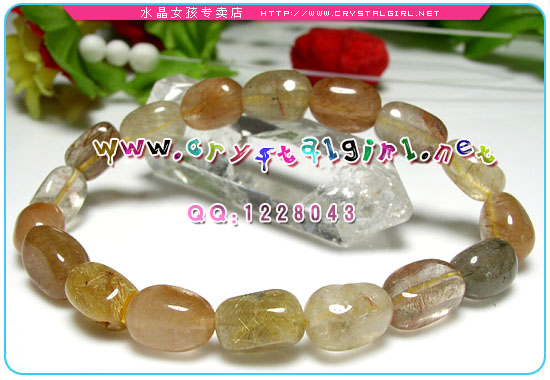 小贴士:福禄寿一词在水晶手链中被被提到时,说得是颜色,三色为福禄寿,绿寿,鸿福,黄禄。所以,应是一件饰品上有最完美的绿色、红色、另加一偏黄颜色时,这件水晶饰品就被认为是十分吉祥的象征;它代表着福禄寿三喜! 福禄寿颜色鲜艳,晶体干净,质地细润,就像一颗颗彩色的糖果。 红发晶-內涵钢状金红石,细密的发丝柔柔缠绵,又称红兔毛水晶;或针状金红石。 黃发晶-也已財寶增盛著名,本身的主要代表為理性跟知性兼具的能量,當自己本身常常理性跟感性再交戰而苦惱不已時,佩戴黃髮晶可以有效協助兩種感覺的調和,並且幫助下出正確的決定。 绿发晶-绿发晶里的绿发可不是普通矿物质哦! 是阳起石(Actinolite),能招财,本身非常稀有,現在已经挺产惜售了。 |