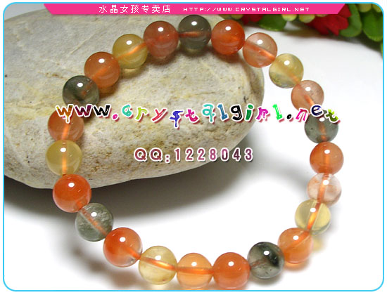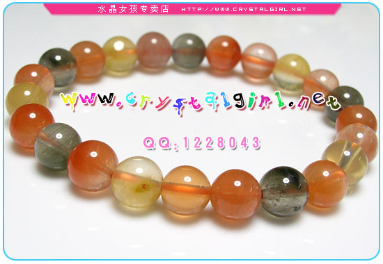 小贴士:福禄寿一词在水晶手链中被被提到时,说得是颜色,三色为福禄寿,绿寿,鸿福,黄禄。所以,应是一件饰品上有最完美的绿色、红色、另加一偏黄颜色时,这件水晶饰品就被认为是十分吉祥的象征;它代表着福禄寿三喜! 福禄寿颜色鲜艳,晶体干净,质地细润,就像一颗颗彩色的糖果。 红发晶-內涵钢状金红石,细密的发丝柔柔缠绵,又称红兔毛水晶;或针状金红石。 黃发晶-也已財寶增盛著名,本身的主要代表為理性跟知性兼具的能量,當自己本身常常理性跟感性再交戰而苦惱不已時,佩戴黃髮晶可以有效協助兩種感覺的調和,並且幫助下出正確的決定。 绿发晶-绿发晶里的绿发可不是普通矿物质哦! 是阳起石(Actinolite),能招财,本身非常稀有,現在已经挺产惜售了。 |