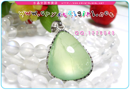 碧石榴又称葡萄石或绿碧榴;常呈油脂绿色,也可能为淡黄至棕色。清澈翠绿的碧绿榴能量强劲,全因其内藏发丝,所以就像所有带发水晶一样,拥有强大的能量,而且它的能量非常集中于帮助佩戴者不断获得更多的正财,所以效果分外强烈;命理里五行缺木或木可旺己的朋友,适宜多多佩戴,可以带来意想不到的好运。