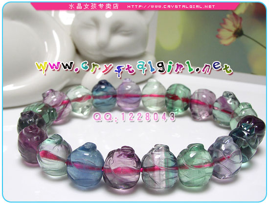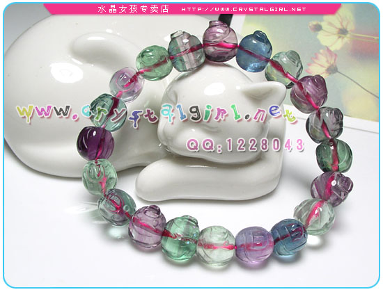 萤石晶:又称为智能之石,莹剔透,以绿色和紫色为主。可开启智能、提高灵性、增加创意思考及预知与分析能力。另外,莹石手链同时能加强人际关系。 萤石:天才之石 萤石又称氟石,因在紫外线、阴极射线照射下或加热时发出蓝色或紫色荧光而得名。萤石雅称“天才之石”,能增强记忆,促进思考,开发大脑,提高综合思维能力,消除头部昏胀和头痛。她亦被称为“彩虹水晶”,主和平,避是非,能去除人体的煞气,洁净全身磁场,防止别人的病气、霉气入侵。女性佩戴萤石饰物,能够防止外来故意攀附的能量。 【主要功能】 萤石的能量隐定柔和,可帮助缓和暴燥的皮性,减低精神紧张,和消除工作压力。萤石可帮助人体气场消磁净化(不是只有水晶要净化哦!),去除不好的杂气晦气,清洁平衡各轮脉。可增加人的审美观及亲和力避免各场合不必要的骚扰,促进分析、比对、归纳及重组的能力。 萤石的八面体有六个尖端,正巧可以代表第六轮。尖端可以创造显著的焦点及敏捷的思考,当思绪混淆不清,没有头绪时,不妨握住萤石,可帮助思绪理清。情绪不好时,放一颗萤石再第二轮(脐轮)或第三轮(太阳轮)上,可以提振精神,平复情绪。冥想时手握萤石,可稳定精神,协调灵性。容易紧张的人可使用萤石,将萤石放在大腿间或太阳神经丛旁边,可使人身手较灵活且有信心、镇定有条理,在开车时使用还能使人提高警觉。 【使用方法】 1、配戴萤石制成的手链、项链,有助于排除身体上所累积负能量,并防止在的负能量入侵。 2、使用萤石按摩棒来按摩来按摩脚底勇泉穴,及周身肌肉、筋骨,能够有效排除全身的酸痛疲劳,迅速恢复活力。 3、当有人感觉沾染到别人的病气、而不舒服时,可以尽快使用大块的萤石片来打坐,排除汗气,或是请他人协助,用萤石刮痧片来排除汗气。 4、使用小片萤石,以逆时钟方向来磨擦身体的每一个部位,并有效平衡周身能量。 5、女性朋友戴着萤石手链、坠子,能够防止外来故意攀附的能量,如公车上的色狼,或是办公室里的性骚扰等等。 6、戴着萤石办公、读书、做研究,能够排除混乱思绪,也不易受到外在意见的干扰,能够好好的分析、比对等等,有效的增进效率。