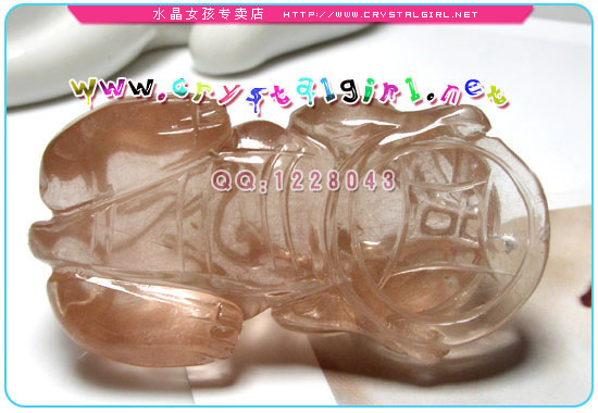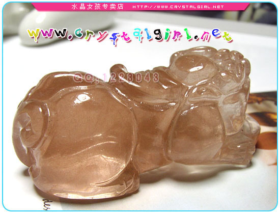 此坠俏色貔貅吊坠品相很好,嘴大PP大,色泽鲜亮,雕工精致,配以高亮度抛光,光滑洁净。面相凶猛,招财必备哦! 红兔毛水晶属于红发晶(别称维纳斯水晶)的一种,因为内涵物呈茸茸兔毛状,因此称兔毛水晶,有红兔毛,橘红兔毛,黄兔毛,白兔毛等不同颜色的内涵物。 【生理作用】橘红色对应脐轮,皮肤,肾,子宫,卵巢等女性生殖器官、男性精囊等部位的生殖器官, 美容养颜,促进血液循环与内分泌。 【心理作用】安抚情绪,发散温暖的女性动人特质,在温婉中透出自信与积极的行动力。 天然红发晶,俗称红兔毛。它是你永驻青春、永远欢喜、活力充沛!带上它更让你更加相信水晶的生命力! “兔毛”水晶.顾名思义在无色透明的水晶晶体中,包含有无数的“兔毛”般发状矿物集体合。 风水吉祥物—貔貅,貔貅是传说中的一种神兽,身无鳞,无毛,有翅,头生独角或双角,神态威武,凶猛异常;有趋财旺财的作用,这是较多人知道的,在一些麻雀馆,都很容易坎到《貔貅》。除偏财之外,对正财也有帮助,所以做生意的商人也安放貔貅在公司或家中。 貔貅:传说貔貅是龙的第六个儿子狻猊(音酸泥,性好烟火,常饰于香炉盖子的盖钮上),与狮子结合所生,所以是龙的孙子(通常人会认为貔貅是龙的第九个儿子,这是错误的说法)。 所谓貔貅坐阵,大杀三方。貔貅能腾云驾雾,号令雷霆,降雨开晴,相传有辟邪挡煞,镇宅之威力。又相传貔貅喜爱金银财宝的味道,常咬回金银财宝讨主人欢心。有旺财之功用,驱邪招财。貔貅以财为食,可纳食四方之财,对于做生意的人来说,貔貅是一只旺财的神兽,有招来正、偏财及为你牢守财富不外流作用,可保你财运亨通哦。宜用于商店、厂房、办公室及家居以达招納效果。爱好偏财者更不可缺少。有镇宅辟邪之功效,可保合家的平安! |