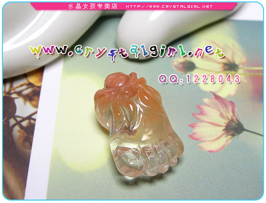 小贴士:又是一款俏色雕法时尚、精致、可爱的饰品,可做为吊坠或手机链。红水晶部分雕有蜘蛛,是取蜘蛛的谐音寓意知足常乐。脚丫寓示为步步高升!绿幽灵可让你财源滚滚,事业有成,增强信心!送于佳人可让爱情更甜蜜美满。 兔毛水晶:又称维纳斯水晶,发散温暖的女性动人气质,在温婉中透出自信与积极的行动力。可调整女性生理,安抚情绪,美容养颜,促进血液循环与内分泌。红水晶能激发斗志,增强人自信心,启发心灵,静心宁神,避浊气和不洁物近身,可以起到护身符的作用。如果女性常常佩戴的话,皮肤会变白皙,会有美容的功效哟 ~而且收藏有增值的哦! |