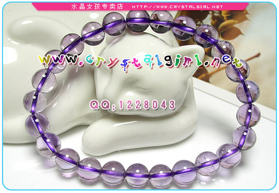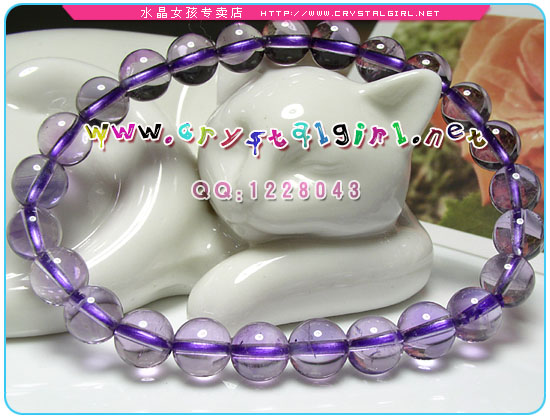 水晶女孩密语:此款是AAA紫晶圆珠。绵体非常少,因此珠体非常透亮。紫晶本多绵体,目前市场上也有不少染色合成的仿造品(整体色泽相当均匀没有绵体冰纹价格低)。MM们购买前要看清楚哦! 紫水晶:被奉为“诚实之石”,它象征着诚挚、正直与善良,也象征天真与快乐,适宜赠送给未成年的晚辈。紫晶又可升华爱情,代表友情,安定情绪,激励思考,广结善缘,平安吉祥,招福挡煞。按照西方人的解释,紫晶的能量是内敛的、内向的,所有晶簇都朝中央生长,表明它具有非常巨大的凝聚力。 紫水晶的作用:开发智能,平稳情绪,提高直觉力,增进人际关系,可带给旅行者勇气与力量并防危险的发生。代表高洁坚贞的爱情,常做为情侣的定情石。紫水晶代表纯洁、和谐、心境平诣,具有镇定安神、加强记忆、缓和暴躁脾气的效果,睡眠时置于枕下,可激发思考、治疗失眠。接触紫水晶能提高灵性,增长智慧。摆放紫水晶簇,会使人心情愉悦和清心寡欲等等,古人认为它有神奇的能力可以避邪、护身,带来幸福和长寿,又可以解毒与避免受伤,好比护身符。 一般新手买家在购买时通常会有以下几种不太正确的想法: 1、颜色深一点好。其实这种看法仅仅只是个人看法,紫水晶的质量好坏并不是以颜色来分的,而是看是否通透,不管是深颜色的还是浅颜色的紫水晶,只要通透,质量就不会太差(当然也要考滤含杂量和冰裂程度)。 2、相信便宜有好货。这一点朋友们是不要盲从了,一分钱一分货,天然紫水晶本来质量好的就不多(紫水晶是水晶里绵体最多的一种水晶)所以不要指望着能花便宜钱买到上A级的紫水晶,如果是商家情愿赔钱送你,那是另外一码子事,呵呵。 3、没有色差、杂质、冰裂的紫水晶手链、项链就好。看到这样的紫水晶手链、项链,还是别买,质量上等的紫水晶,也不可能是一点色差也没有的,现在许多商家卖的3A级的紫水晶也都是有杂质和冰裂的。 |