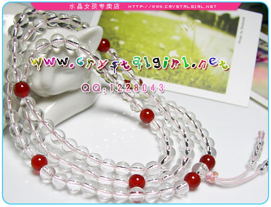 108粒白水晶隔红玛瑙手串,适合手围15CM左右,可绕手4圈,也可以当毛衣链,亦可按要求量身定做! 白水晶的作用:白水晶有聚焦、集中、扩大、记忆的功能,是所有能量的综合体,称晶王。可镇宅辟邪,净化全身,提升灵性气、使心灵平静、和谐及坚定意志、去除病气,趋吉开运。人体负能量过多,导致多病,白水晶的磁场可使负能量气流改善,净化全身,扩大潜能,健体治病,恢复元气而健康。 白水晶的灵性功能:白水晶在所有水晶种类中,磁场能量最平稳、最纯粹,是所有色彩,能量的综合体,平衡体内能量的最佳选择!白水晶特有聚焦、集中、扩大记忆的功能,可以有效储存讯息记忆能力,也之所以常使用于修身,练气、占卜上。白水晶其纯粹能量,有效提高自在灵气,激发潜能、养身调气,使其精神更平和。白水晶的能量是属于放射性阳气场,亦相当适用于镇宅,供佛、强化空间磁场。 红玛瑙是最具疗效的宝石之一(如:消化系统、胃痛),消除精神紧张及压力。 |