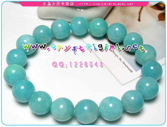 天河石又名亚马逊石,是宝石级的长石类矿物的一种,往往集中于晶体外围或成细脉体,具格子双晶,解理发育。饰品中可出现绿、白色格子状痕迹。 功效:能帮助安神,防止失眠,舒缓颈骨和脊骨疼痛,也适合孕妇配戴因有安胎作用。