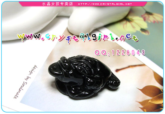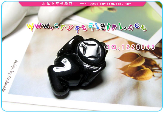 神兽雕嘴叼一个铜钱,所吐的钱便是旺财的,意为“招财进宝、一本万利”! 俗话说“二条腿的人好找,三条腿的蛤蟆难求”,三脚金蟾是瑞祥之物,特别之处是它只有三条腿。相传,这瑞蟾所到之处,那里的人都必定会富庶起来;比如这瑞蟾到了那宅,该宅的人便会随着飞黄腾达。 三脚蟾蜍的口是会吐钱的,因此蟾蜍的面向自己或屋内,可将屋外的钱财送入屋内,使本宅的财运增强,并且兼具堆金积财的运气。是最常用、最有效的催财风水用品。 黑曜石的能量非常刚烈、强劲,辟邪效用最佳,随身佩戴黑曜石是最好的护身符、辟邪物。 黑曜石对应海底轮,可以有效排除身体负能量,和增进新的能量;有助于消除疲劳、压力、头痛,吸收、排除身体病气、浊气,并且快速恢复体力,改善体弱气虚的毛病,增进身体活力与耐力,是最能保护健康的宝石。 对于运气不好的人,多是浊气过重,可以有效吸收身上浊气并转化,以改善运气,并增强对异灵干扰入侵的防卫能力。可增强生命力,恢复人的精神,体力,对用脑过度的上班族和创意工作者有很好的平衡作用。可强健肾脏,吸收病气,增进睡眠,对酗酒,抽烟,药品成瘾有改善作用.可使人稳重,舒缓压力,心平气和,消除情绪困扰.并可加强行动力.增强领袖魅力,向心力,有助事业,也称“领袖石”。