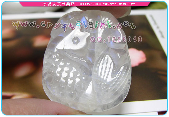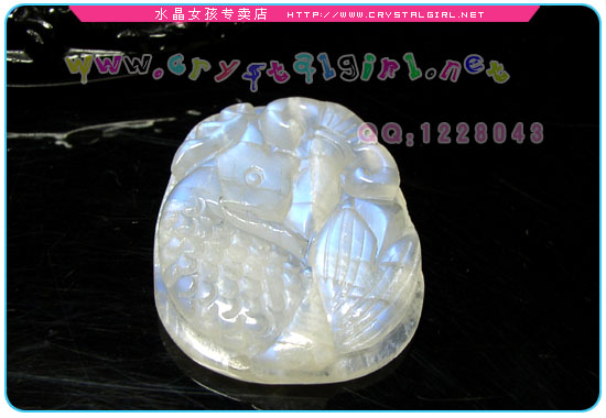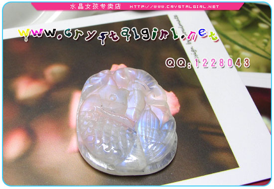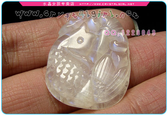 水晶女孩密语:大块的月光雕成鱼跃起状,水花四溅。不同角度会泛现出神密的蓝色光。月光石通常帶有绵和冰纹,这样的材质另有一番风味,鱼跃龙门,步步高升…… 月光石的得名则是因长石晶莹剔透,由于内部有特殊的结构,而闪出淡淡的蓝色,好似幽静夜幕下的月光。传说中,它们分别是太阳神和月亮神赐给人类的礼物。 月光石在缅甸、斯里兰卡有一定量产出。常见的仿制品是一种有乳光的玻璃,这种玻璃半透明,它的乳光不论从哪个方面看都存在。而天然的月光石一般透明,它闪出的光只在某个角度可见,在其他角度则完全看不见。从这两点可以较好区分月光石与其玻璃仿制品。 水晶灵性:所有宝石当中最可爱的一种,它可以增强的第六灵感。它亦称为“恋人之石”,可使二人幸福,快乐。 特质-表面有点像雾玻璃般的细致、柔和,透光性颇强,由于内部结构中光反射造成夹层中的钠长石发出诱人的色光,神秘浪漫的光泽,像月光般充满灵气。印度人将月光石当作圣石,而古希腊及罗马人更深信月光石在满月时又其充满强大的力量,据说将月光石以白K金作成戒指最能让其发挥最大能量。 |