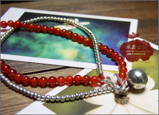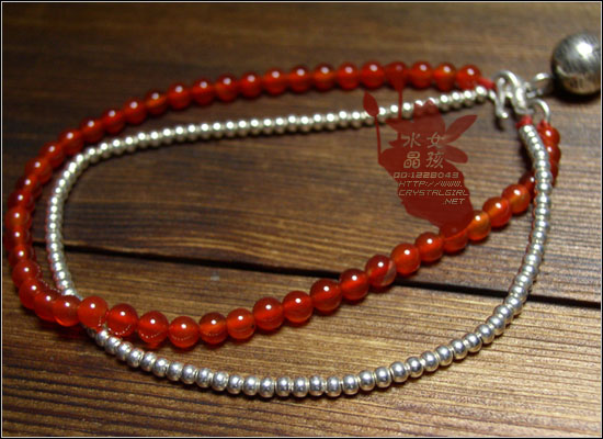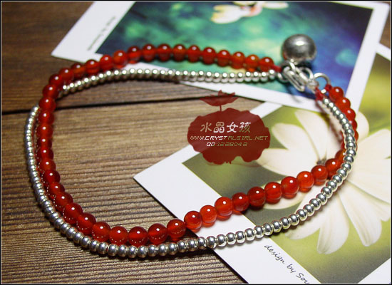 小贴士:本款是以2.5mm纯银珠,4mm通透红润的红玛瑙制成的双层脚链.尾端配有泰国手工99纯银铃铛(声音清脆),也可做同款手链。珠孔细小很难串,制作时间2-3小时。购前请告知店主长度。更多银尾饰请进主页银.红绳目录选购。