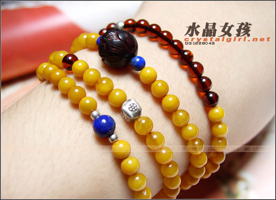 水晶女孩密语:天然老蜜蜡。老矿料,断货半年之久,好不容易找到的料,这次的数量也不多,只够做23十条长链。色很温暖柔和。外有脂光、包浆。内有绢丝、云纹、风化纹。油润度极高,感觉好像要滴出油来,还没把玩,已经这般油润,足已验证出质地的上等,只有上等的老料,才可以有这般唯美绝伦的宝贝! 注:本款为108粒老蜜蜡多宝佛珠,本店原创品。隔珠部分有:血珀、小叶紫檀莲花、青金石、99泰国手工做旧银,925银珠。上图适合14-15CM的手围配戴,如需加长可定制!购买前请量好手围告知店主。 琥珀,是经过四千万-六千万年才形成的一种珍贵的天然有机宝石,是史前松柏科的植物的树脂,经地质作用掩埋地下经过漫长的地质时期,树脂失去挥发成分并聚合,固化形成琥珀。正是由于她自身的形成源于生命体,所以天生就赋有灵性。而且绝找不出完全相同的琥珀,每块琥珀都是绝无仅有的,最适合追求独树一帜的个性男女。 古罗马时期,琥珀就被当作药材来治疗各种疾病。如精神病、咽喉炎、耳朵、眼睛等方面的疾病。琥珀研成碎末后中医称作“黄金土”,可定惊安神、活血化淤、利尿通淋。(节选于《名医别录》)琥珀能治疗或减轻许多疾病和痛楚:如头痛和喉痛,宜在颈上戴上琥珀项链;手腕关节痛楚,可戴上琥珀手链;若觉得身体疲劳,则需要戴上较大的琥珀。 中国古代,皇室贵妇就视琥珀为吉祥如意之物,新生儿佩戴可避难消灾、一生平安,新人戴上它可永葆青春,夫妻和睦幸福。作为佛教信七宝之一的琥珀,更为佛教徒视为吉祥之物。除安神定性外更可辟邪保身,常年佩戴可镇静养神、安神定性,且可杀菌消毒及避免传染病,所以也会被做成香环或香来使用,也有人磨成粉末拿来止鼻血,火伤或挫伤,但据说最有效的是在于预防喉咙方面以及其他呼吸器官的疾病,所以常做坠子挂在喉轮附近,另外对发烧、肠胃的不适也有舒缓作用,甚至可促进肝、肾细胞的活化,对于黑与红色的血珀,则能对应海底轮,可增加生殖能力及性器官功能, 对男女都有帮助。古籍如《本草纲目》中指琥珀可安五 、定魂魄、消淤血、疗盅毒、止血生肌、可安胎养性……。 现代医学家也证明在深海的琥珀对于现代化电器,如电脑,TV及精度仪器所散发的一些有害射线,有很好的吸收作用。 【琥珀的鉴别】 1、天然的琥珀质地很轻,可浮于1:4的盐水,一种有用的测试方法是把未知材料放到饱和盐的溶液中,琥珀在盐水中将飘起来,而大多数材料将沉下去。这种测试方法通常足以将琥珀与电木和其它许多塑料特质区分开。(店主建议使用第一种方法最适合。不会对琥珀有所伤害) 2、此外,根据折射率来辨别也可以,琥珀的折射率一般有变化,但通常接近1.54,可低至1.539,高至1.545。因为琥珀是一种非晶质物质,所以是各向同性的,无解理,无多色性,也无双折射,而一般电木的折射率为1.60左右,所以折射率也是有用的区分指标。 3、将小碎片缓缓加热时,电木放出强烈的电碳酸气味,赛璐珞发出樟脑气味。 4、琥珀与一些现代树脂,如苯乙烯树脂、贝壳松脂、达马树脂等很难区分。苯乙烯脂和贝壳松脂在乙醚中浸泡5-2分种后,就发生膨胀和软化。另外,用一极热针熔化苯乙烯树脂和贝壳松脂要比琥珀容易得多,但这种差别不大,还需要与已知的琥珀相对比。需要用醋酸乙脂来软化达马树脂。 5、为了鉴定一颗琢型琥珀,最好以难以觉察的位置滴一小滴乙醚,停留几分种。如果琥珀被乙醚所腐蚀,那么乙醚挥发后,就会在其表面留下一个斑点。由于乙醚挥发十分快,有时必须用一大滴乙醚,或不时地补滴。比方法会破坏琥珀,请谨慎使用。 【琥珀的保养】 |
