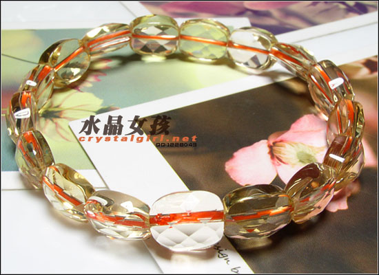 水晶女孩小贴士:透明澄橘黄色的天然黄水晶,像蜜糖水般甜滋滋的黄澄,有些许绵体,切工很闪,不要错过。