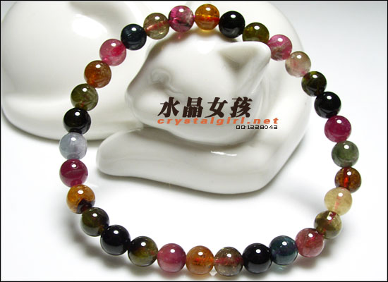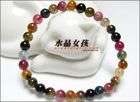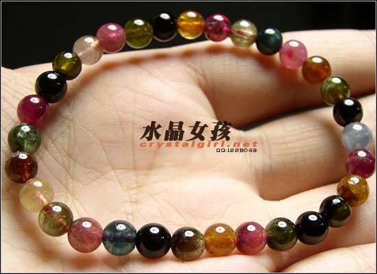 此款碧玺手链颜色漂亮,色彩非常丰富,带有多粒蓝珠,很衬皮肤!