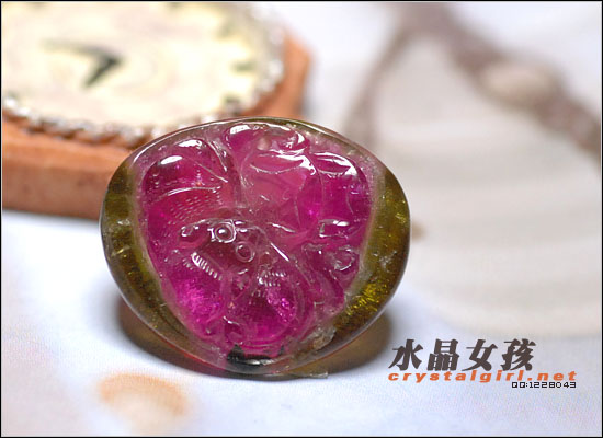 【特质】天然玫瑰色碧玺有艳丽的红色,桃红色及粉红色,有时会有天然冰裂纹。品像好的碧玺通常用来作戒面,以克拉为单位计算价格,闪烁动人不输给红宝石,是珍贵的一种宝石,据说有养颜美容的功效,因此也是清朝慈禧太后的最爱。