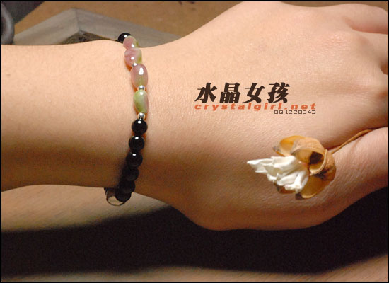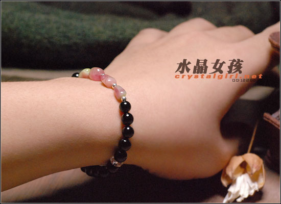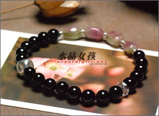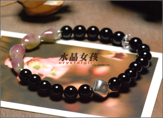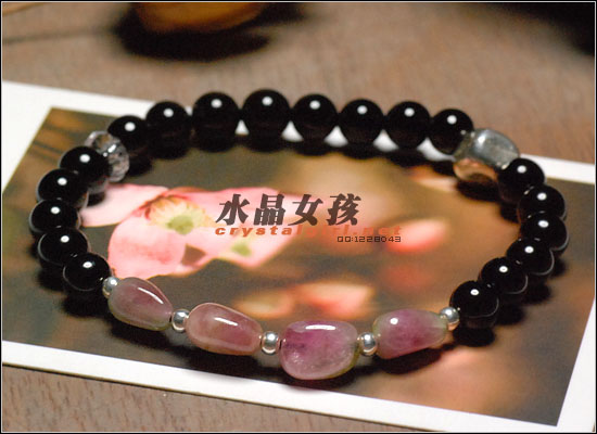 水晶女孩原创款:每一粒都是正宗的西瓜碧玺!衬肤的糖果色,配上银珠,白水晶和黑玛瑙,简单又特别:)