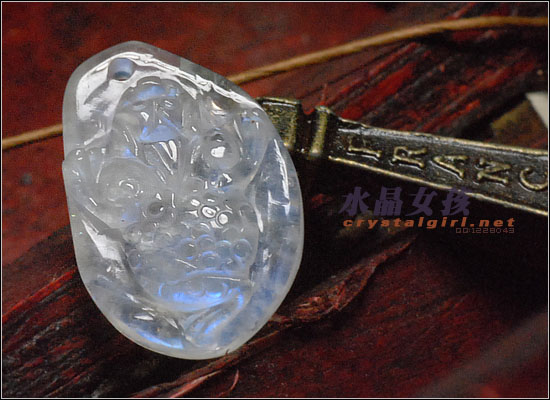 水晶女孩密语:大块的冰种蓝月光三脚蟾,招财必备! 俗话说“二条腿的人好找,三条腿的蛤蟆难求”,三脚金蟾是瑞祥之物,特别之处是它只有三条腿。相传,这瑞蟾所到之处,那里的人都必定会富庶起来; 三脚蟾蜍的口是会吐钱的,因此蟾蜍的面向自己或屋内,可将屋外的钱财送入屋内,使本宅的财运增强,并且兼具堆金积财的运气。是最常用、最有效的催财风水用品。 月光石的得名则是因长石晶莹剔透,由于内部有特殊的结构,而闪出淡淡的蓝色,好似幽静夜幕下的月光。传说中,它们分别是太阳神和月亮神赐给人类的礼物。 月光石在缅甸、斯里兰卡有一定量产出。常见的仿制品是一种有乳光的玻璃,这种玻璃半透明,它的乳光不论从哪个方面看都存在。而天然的月光石一般透明,它闪出的光只在某个角度可见,在其他角度则完全看不见。从这两点可以较好区分月光石与其玻璃仿制品。 水晶灵性:所有宝石当中最可爱的一种,它可以增强的第六灵感。它亦称为“恋人之石”,可使二人幸福,快乐。 特质-表面有点像雾玻璃般的细致、柔和,透光性颇强,由于内部结构中光反射造成夹层中的钠长石发出诱人的色光,神秘浪漫的光泽,像月光般充满灵气。印度人将月光石当作圣石,而古希腊及罗马人更深信月光石在满月时又其充满强大的力量,据说将月光石以白K金作成戒指最能让其发挥最大能量。 |