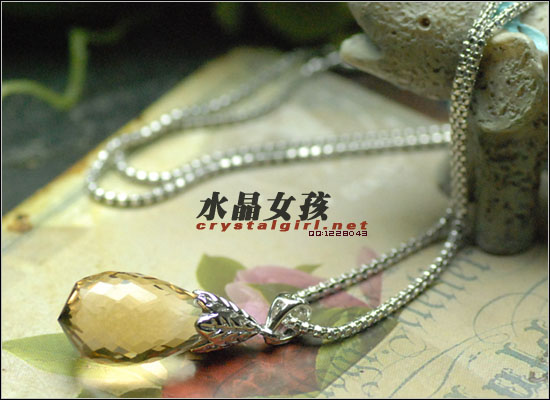水晶女孩小贴士:透明澄黄色的天然黄水晶,多角度切割工艺,经典水滴造型非常高贵!注:本品不含银链,有需要请到主页另购。 黃水晶在寶石界被稱為「水晶黃寶石」,其顏色從淺黃、正黃、橙黃、到金黃都有。由於亮度與彩度都十分出色,只要是透明而光潔,都稱上品,而且又遠比黃玉剔透,因此備受消費者青睞,常被切割成墜飾或戒面。由於天然黃水晶極為稀少,價格也比較昂貴. 宝石級的黃水晶极为稀有,以桔黃色的为极品。能量强烈,俗称财富之石,能增强气场中的黃光,黃光會影响物质生活和财运,因此,把黃水晶擺設配合家中或辦公室的財位摆放,可大大增强财运。