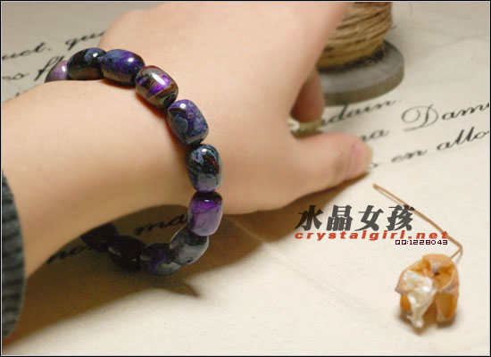 紫品舒俱徕手链。非常高贵的紫,在光照下颜色变得更加绮丽娇艳。石头表面非常有光泽度,又有种油润的感觉,手链的形状与花纹完美的结合在一起,很值得收藏。 奇异独特的美 兼灵性保健于一体,独具设计感时尚艺术感的天然宝石!可打通人体经络,提高免疫力,有防癌防辐射等保健作用,南非国宝石,灵性保健男女老少不限! 依据德国水晶治疗师海嘉?宝汀娜(Helga Ppttinger)指出:舒俱徕石对癌症、肿瘤等具有保健的效益,是最理想的护身石之一。舒俱徕石的颜色变化多端,经由体温气场盘养,可以见到它美丽的走色过程,打通灵脉,增强第六感 苏纪石,亦被誉为「千禧之石」,也是公历二月份的生辰幸运石。苏纪石为稀有宝石,被誉为『南非国宝石』,产于霓石正长岩的小岩珠中,主要成份是氧化硅,并内含钾、钠、铁、锂等多种金属元素。1944年被日本一位石油探勘家Mr. Kenichi Sugi发现,因此就以他的名字来命名,但直到1979年,由于部份伟塞尔锰矿的崩塌,南非才发现达到宝石级的苏纪石。 外观呈各种不透明的深浅紫与紫红色交织,甚或深至黑色,皇家紫为最优质的颜色,长久佩带能令颜色的光彩更亮丽。层次不同的美丽紫色,加上深浅不同变化,让苏纪石蒙上一层神秘冷艳的色彩,它是一种非常特殊的宝石。 苏纪石的灵性功能: 苏纪石(Sugilite)能清除、净化全身脉轮负能量,据说能消除因果业障,亦能改善因果业力导致的无名疾病,被称为『因果石』。舒俱徕石的能量悠远而绵长,沿着脊椎,由上而下流动,可以开启、平衡、净化全身七个气轮,促进细胞更新,对免疫力的加强极有帮助。 依据德国水晶治疗师海嘉·宝汀娜(Helga Ppttinger)指出:舒俱徕石对癌症、肿瘤等具有保健的效益,造成化疗病人的抢购风潮,是最理想的护身石之一。舒俱徕石的颜色变化多端,经由体温气场盘养,可以见到它美丽的走色过程,深为灵学工作者爱用,打通灵脉,增强第六感。 苏纪石能吸收转换紫色光,适合创作人士佩戴﹔也能帮助我们在人生的新阶段有好的开始,让人懂得谦虚,处世更加圆融周延,消除负面心念,赢得它人的友谊。 苏纪石是由很多种矿物元素组成。它的能量,能够超越肉体,直达「灵脉」。因为「灵脉」就是将能量供应给人体七轮的一个大站。亦是通往精神次元的一个大管道。疏通「灵脉」,即有如唤醒你心中已沉睡的巨人。个人的潜能,将迅速增长、灵感无限。心灵智慧亦相应提升,达至无忧无惧。 从生理作用方面:由上而下的能量,可平衡松果腺及脑下垂体的分泌,据说对小孩的自闭,难语症及癫痫有改善的作用,对应眉轮对偏头痛也有舒缓的效果。 从心理作用方面:有"第三只眼"的别称,对有高度灵性的人特别适合佩带,可因此得知自己的天赋,并藉观想找到可以帮助他人的健康方式,对沮丧与绝望有安抚的功效。 根据以上的描述我们来总结苏纪石的功效: (1) 加强记忆力,开发智慧,协助在思考,适合求学人士用。 (2) 用于打座,可增加灵通能力,帮助人们进入灵性世界。 (3) 激发思考、灵感、创作力,适合当创作工作的人士使用。 (4) 对因果癌症、肿瘤等,具有保健的效益。 (5) 在暴怒、沮丧、忧郁中,将此贴近心辆,有平均作用。 (6) 使人处事更加圆融,和善,容易赢得他人好感及信赖。 (7) 能开启、平衡全身脉轮,亦可净化全身脉轮的负能量。 (8) 开启第三眼,增强第六感。 |