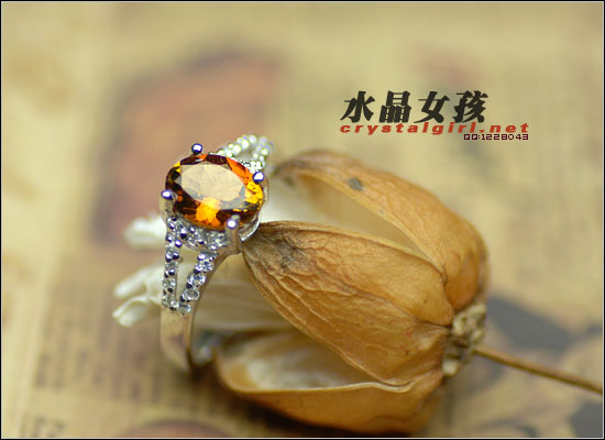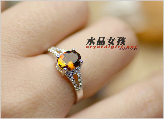 黄碧玺戒指。晶体通透,多角度切割工艺,戒环为纯银镀白金可抗氧化处理,非常高贵时尚。