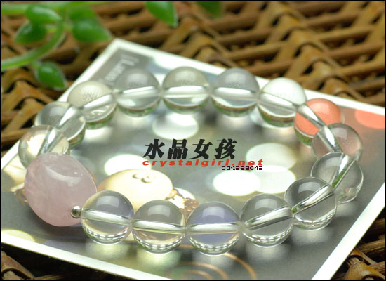 水晶女孩密语:白水晶隔粉晶银珠手链,可转运增加人缘! 白水晶的作用:白水晶有聚焦、集中、扩大、记忆的功能,是所有能量的综合体,称晶王。可镇宅辟邪,净化全身,提升灵性气、使心灵平静、和谐及坚定意志、去除病气,趋吉开运。人体负能量过多,导致多病,白水晶的磁场可使负能量气流改善,净化全身,扩大潜能,健体治病,恢复元气而健康。 白水晶的灵性功能:白水晶在所有水晶种类中,磁场能量最平稳、最纯粹,是所有色彩,能量的综合体,平衡体内能量的最佳选择!白水晶特有聚焦、集中、扩大记忆的功能,可以有效储存讯息记忆能力,也之所以常使用于修身,练气、占卜上。白水晶其纯粹能量,有效提高自在灵气,激发潜能、养身调气,使其精神更平和。白水晶的能量是属于放射性阳气场,亦相当适用于镇宅,供佛、强化空间磁场。 |