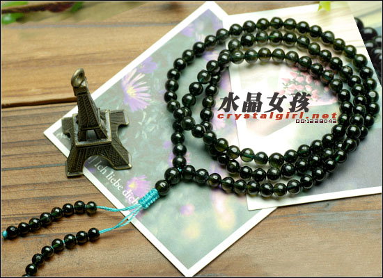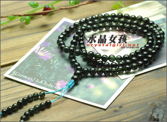 纯绿色的108粒碧玺佛珠。碧指绿色,玺为皇帝御印,一代帝王象征,由此可见碧玺在人们心目中的地位。碧玺自古以来都是宝石中的佼佼者,以它独特的火彩得到了众多女性的青睐,慈禧太后的很多首饰也都是由碧玺制成,可以说碧玺已经成为了女性必不可少的首饰之一。