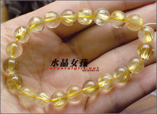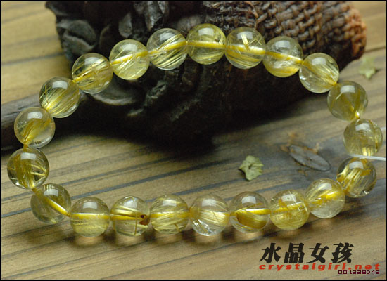 小贴士:此款金钛晶呈金黄色,大部分发为顺发(全顺发丝现在的产量已经相当少),即向一个方向生长,通常顺发晶的能量要比杂发晶的能量要足好几倍,发丝粗,带猫眼效果。只要有光照到它便发出实足的金光,闪闪耀眼,会让你感到心旷神怡,爱不释手。只此一条喜欢就不要错过哦^^ 金发晶:是一种权威水晶,极具权势象征,因为它的气场能量极强,除了能辟邪外,还可可增强人体生物气场,增加胆识,实为进取心强烈,期望做大事者不可缺少的开运宝石。金发晶被认为能招财聚气.