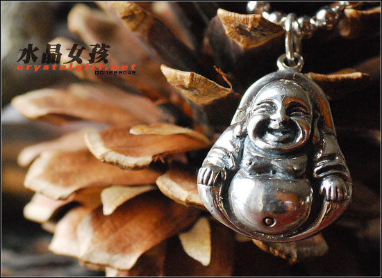 水晶女孩密语:925纯银笑口佛,笑口弥勒佛能报平安消灾消难,男女都可佩带,本款不含银链,如需要请到银饰目录选购。